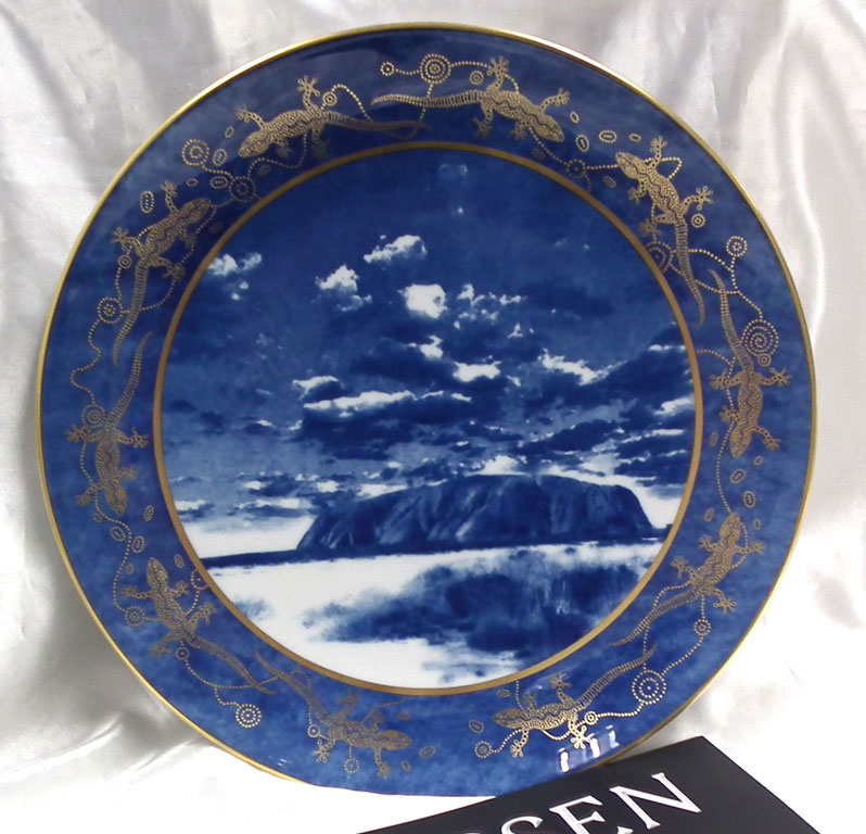 | 2009年~2004年は、アンドレアス・ヘルテン氏デザイン、オペレッタシリーズです。1967年生まれのヘルテン氏は、青い花、ユーゲント、ベゴニア等花絵付けを得意としております。Φ約27cm、プレート裏に、年号、タイトル、双剣マークが金彩で書き込まれ、壁掛け用フックがついてます。 | ||