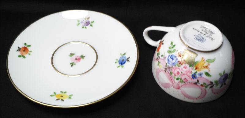 カップφ約7.5cm、幅約10cm、高さ約5.5cm、ソーサーφ約14.5cm、裏にブランドロゴ入り お取り寄せ |