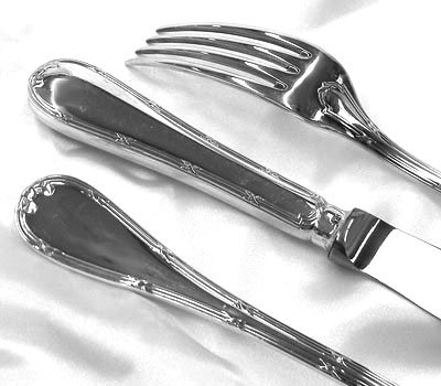 | クリストフルシルバー、マリーアントワネットが愛したリボンの柄ルイ16世様式、リュバンシリーズです。 |