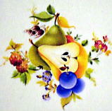 | メインの花のモチーフが6柄(1.チューリップ、2.野ばらイエロー、3.ローズヒップピンク、4.ケシ、5.アネモネブルー、6.スイトピーイエロー)にフルーツ、木の実、野菜が描かれます。メイン以外の柄はペインターさんお任せとなります。 |