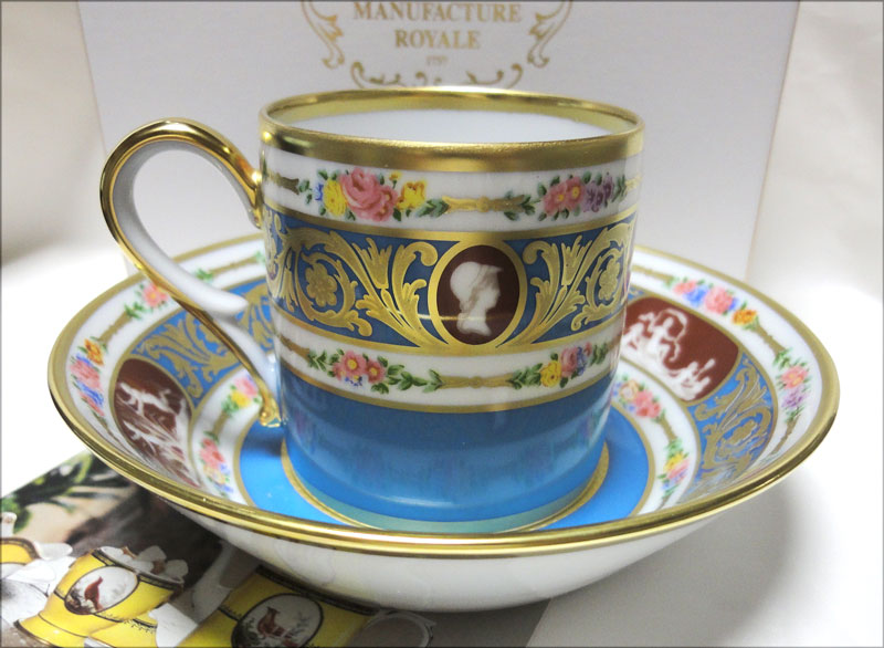 カップ、ソーサーの裏に ”王妃マリー・アントワネット”1773年セーブル磁器工場デザイン