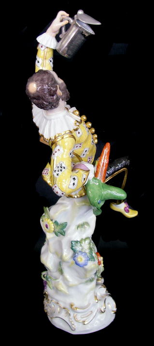 Kayserlingの注文で少女12人少年12人対になるシリーズ)、1771-1775年、3期に渡り製作が行われました。 ピッチャーを持つアルルカン(1764年)の人形。(納期約1年~)。マイセン双剣マーク入り。 |