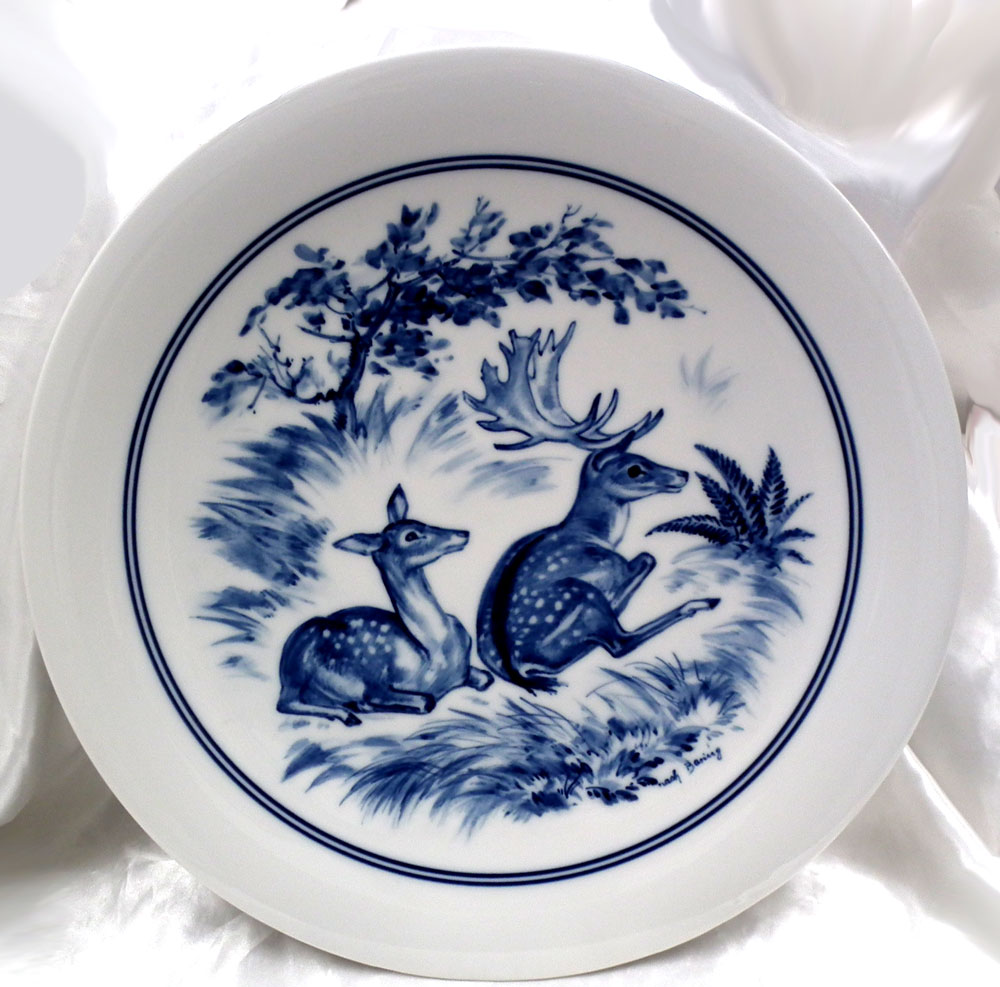 | ■マイセン/鹿尾大皿 φ約34.5cm 2頭のつがいの鹿が手描きで描かれた作品です。プレート裏に双剣マーク、壁掛けフック付き。 特価 ¥150,000+税 詳細画像 |