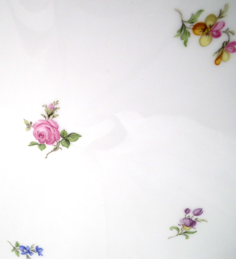 | 全体に小花が描かれております。ベーシックフラワー36種類が描かれます。小花はペインターにお任せとなります。裏にマイセン双剣マーク入り。 | ||