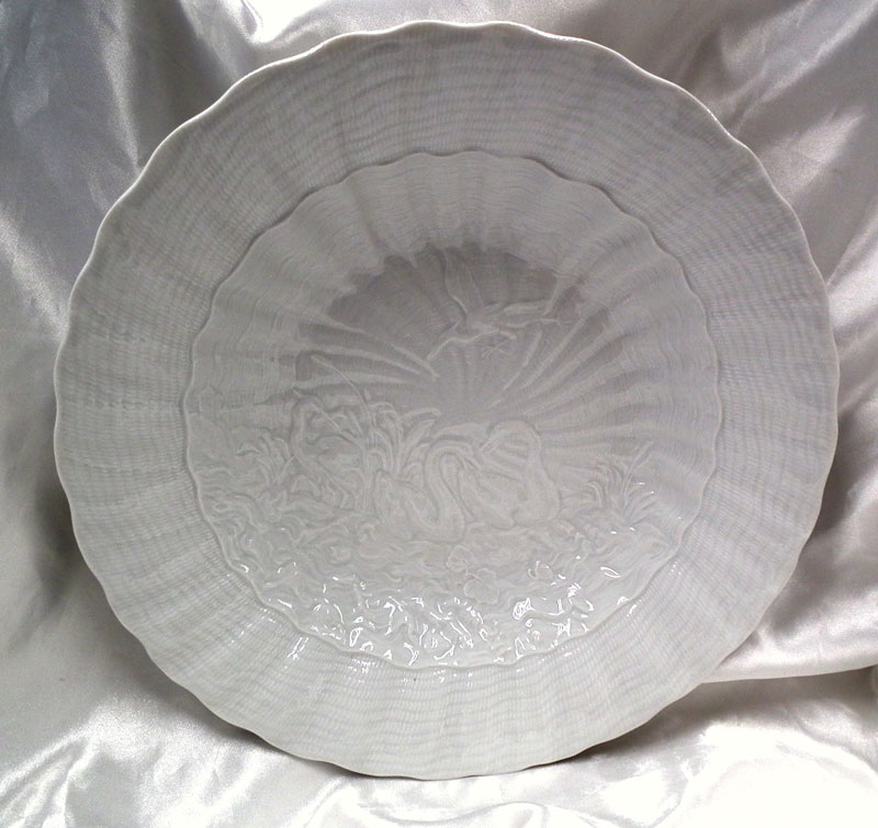 白鳥や鷺のレリーフが美しい白磁のシリーズ。裏にマイセン双剣マーク入り。