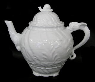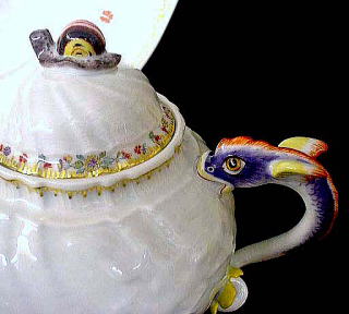 ポットのハンドルはドルフィン、つまみはカタツムリ、白鳥や鷺など水辺のレリーフです