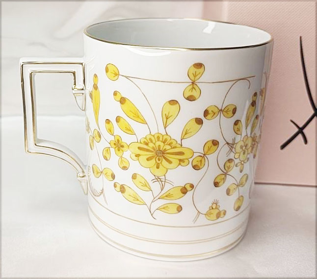 | ■マイセン/インドの華リッチ イエロー(343610)マグカップ(55810)高さ約9cm、φ約8cm、容量約0.25L特価¥82,500(税抜¥75,000) インドの華のページへ 色違いあり |