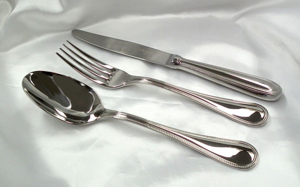 ■クリストフル ステンレス/パール2(2405)テーブルセット テーブルスプーン(002/約20.7cm)x1、テーブルフォーク(003/約20.3cm)x1、テーブルナイフ(009/約23.7cm)x1の3本セット 定価¥17,050 20%OFF¥13,640 即納! 在庫がない他のシリーズ/アイテムも1本よりお取り寄せいたします |